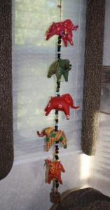 I also had to leave behind my huge elephant collection but I did manage to find room for some of my “more petite” friends. I was able to hang a string of elephants from one of the window frames, a very thoughtful birthday gift from Joanne Davis some years back. I managed to find hanging room for Amelia, my barnstorming elephant who peddles a tricycle-turned-biplane. I’m sure she’s been on some crazy rides since we began our trip.