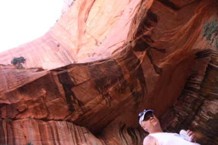 Thursday Sept. 30 was a day at Zion, about 30 miles up the road. We started the morning with a short 2.5 mile walk before breakfast. When we arrived at the park entrance we thought we were pretty darn smart by purchasing an annual National Parks pass for $80 instead of a one-time entry pass for $25 only to discover that the time starts ticking on the 1st of the month, in this case Sept. 1. Oh well, what a difference a day makes! We enjoyed wonderful Mother Nature at her finest and decided that since we had a short morning walk that we would take a short afternoon hike. Just under a mile to Lower Emerald Pool. Perfect! But when you make ONE wrong turn at the start of the trail, you end up 1.5 miles farther and 500 feet higher at the Upper Emerald Pool. The view was worth it, and we took plenty of Advil before going to sleep that night.