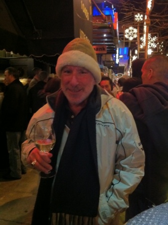 Have you ever been in a restaurant when the evacuation alarm goes off? Lots of people start staring at perfect strangers all around them as if one of them is going to offer the answer to “What the heck is THAT?” After a few minutes of either trying to figure out what is going to happen, or in my case jamming food down my gullet in anticipation of the inevitable, we get asked to step outside. Here’s a great shot of Mike who has the veracity to remember to take his wine with him. Actually, I’m pretty sure he didn’t even think about taking it with him, it just stuck to his hand and went along. Cold soup, bad. Cold wine, good! For this little piece of brilliance, we are declaring Mike our Person Of Interest for this Thanksgiving blog.