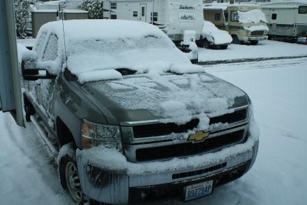 But we got ‘er done (again) and hit the road. After that it was smooth sailing, and we arrived in McMinnville safely (and grungy from the road melt) hoping that the next 3 days would bring a nice big thaw and maybe even a little rain to rinse the rig down. Stay tuned as we migrate south in search of warm weather!
