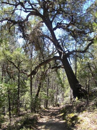 And here’s one of a gnarly old oak that will someday get a gap cut into it after it falls over the trail.