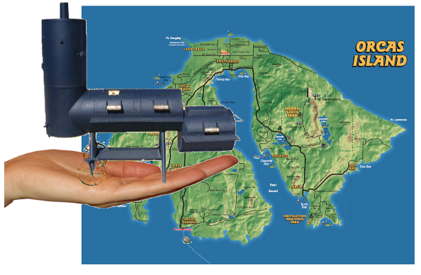 Once we were into Washington, we really made ground. Almost all our time was spent devising an engineering plan to convert Stanley into something that could be towed behind a car. Portability is a highly desirable thing if you want to drag pure masculinity to family and friends events. My brother Johnny has a LyfeTyme smoker that’s towable. Orcas is a relatively small island, but I’ll bet that trailer has more miles on it than Carter has pills. What, you didn’t get the reference? You can’t be even fifty then, so why are you reading about old farts and a Road Trip?