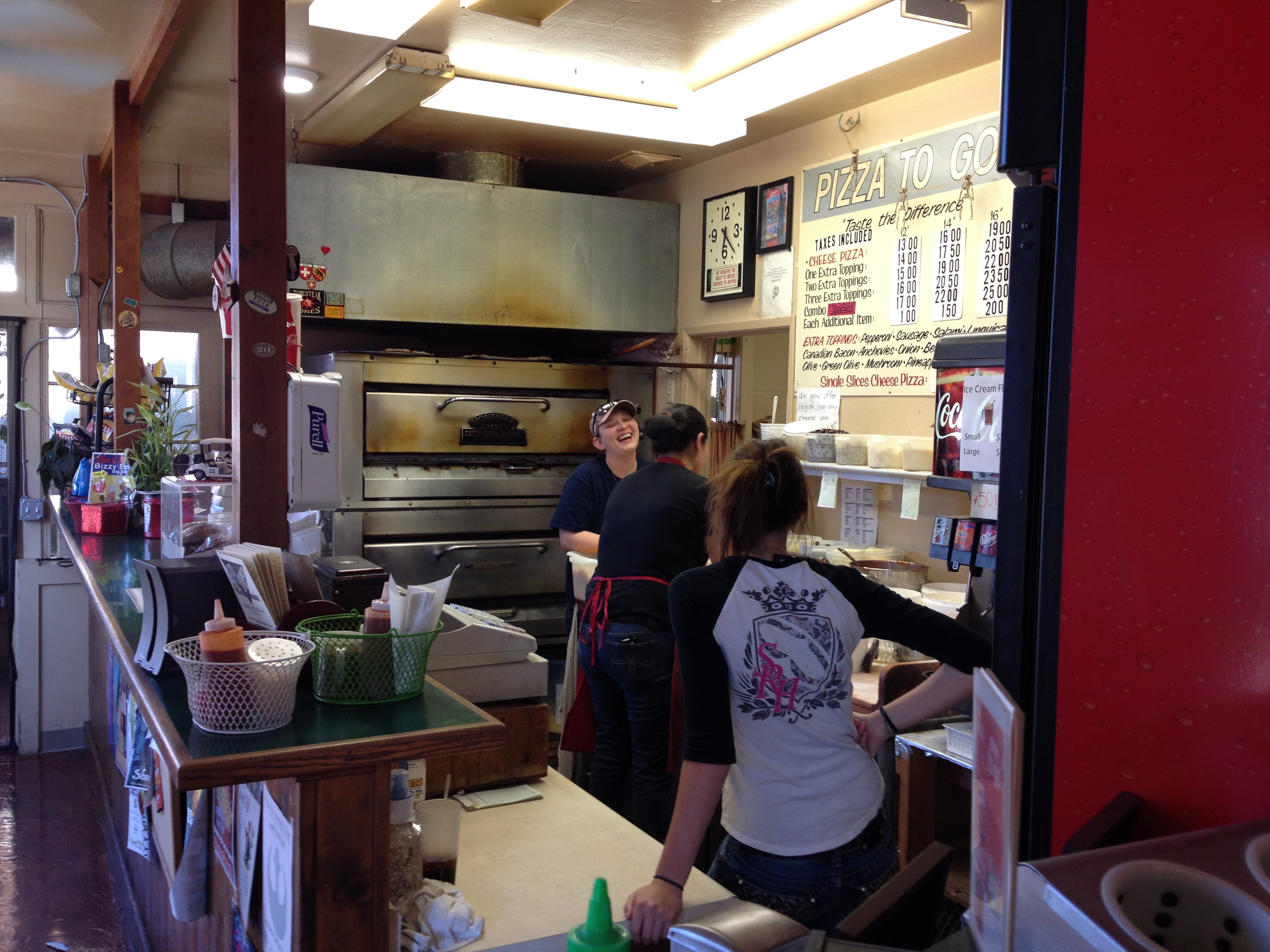 Dinner was a custom made pizza at Pizza To Go in Willits, California. Jeff has an allergy to garlic and onions, or anything a fire-eater like me might find on or in his food. So we let the girls cook up a pizza with all the ingredients on their list that wouldn’t assault his gut, and potentially make our tin can transportation even more challenging. It was very tasty, but I sense the girls there hadn’t seen anything like it ever. Or maybe ever again.