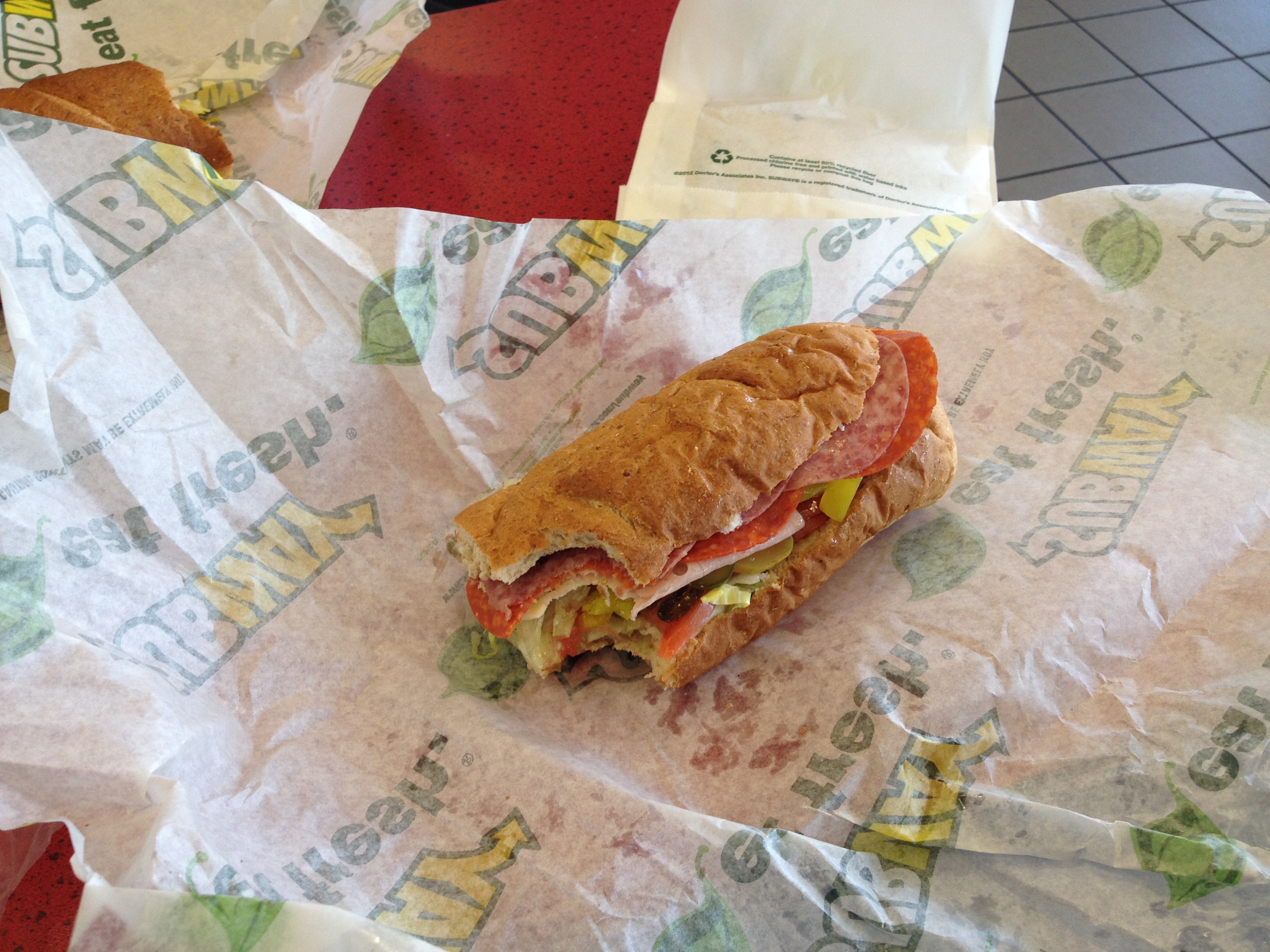 Lunch on Sunday was the Red Bluff Subway at the Shell station on I-5.
