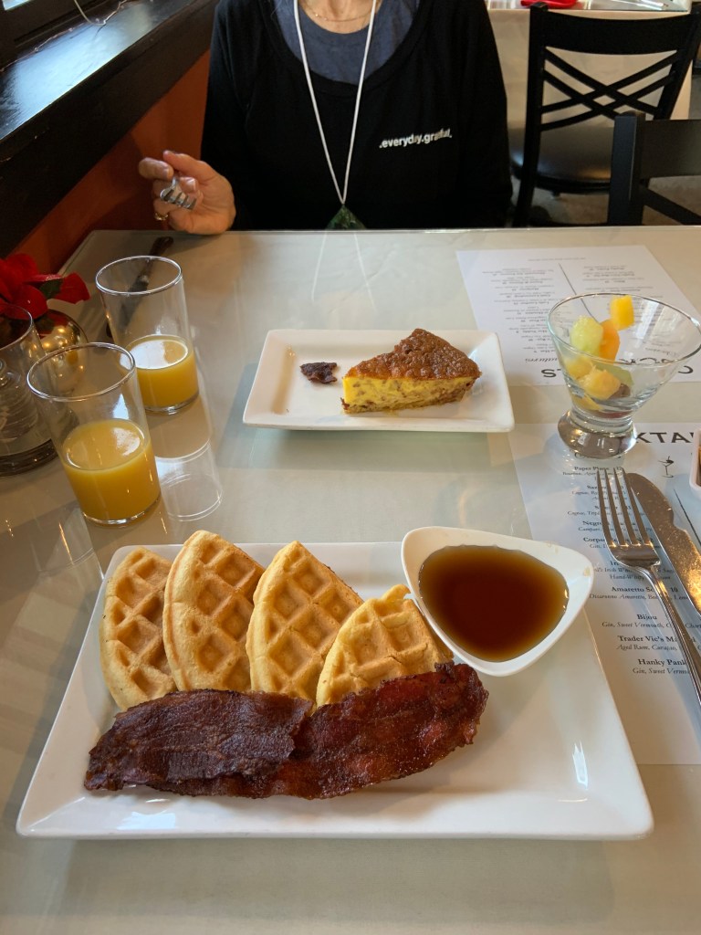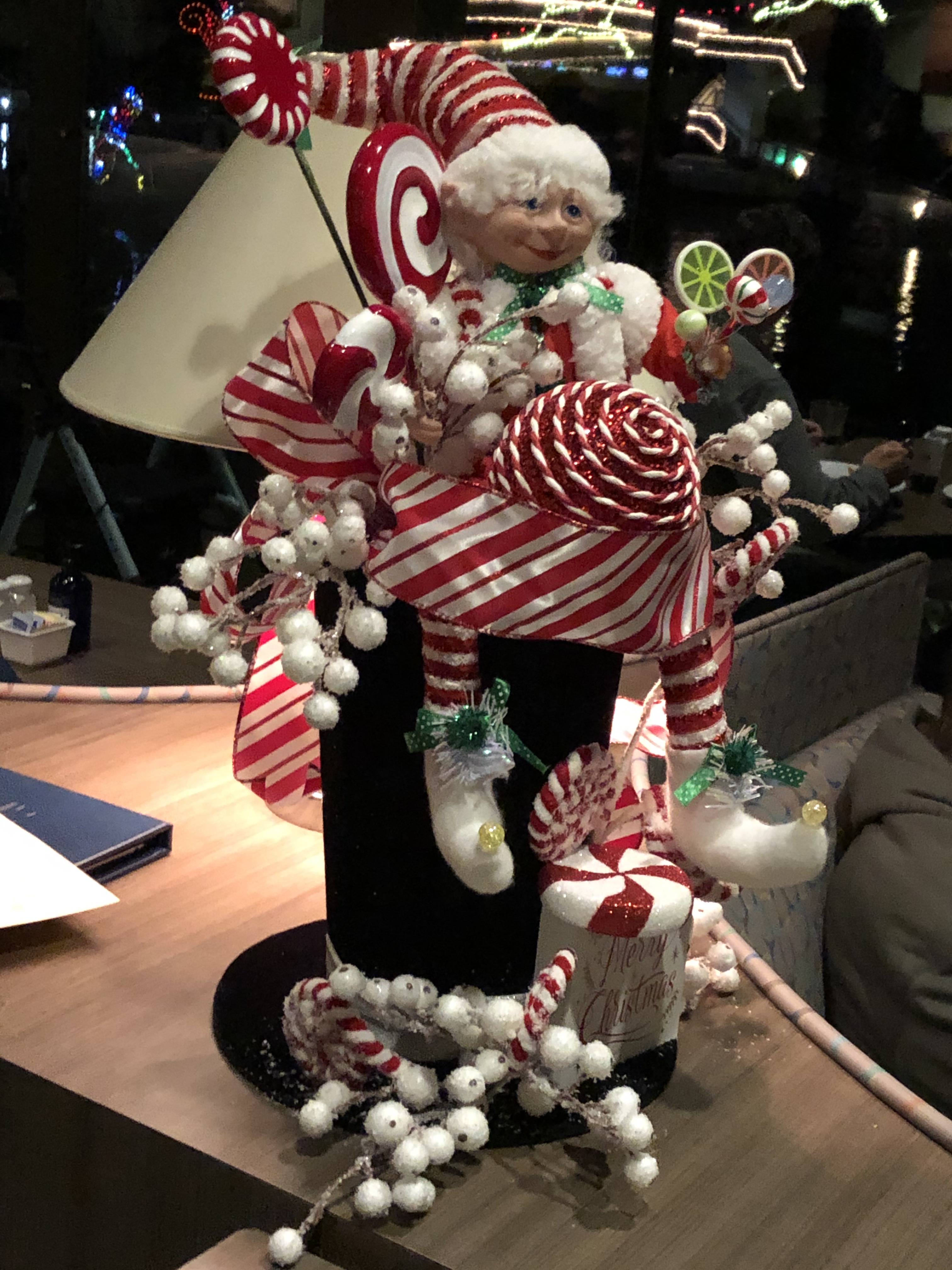 We had our hearts set on something other than turkey for Thanksgiving Dinner, and we hit pay dirt at The Dockside restaurant in the resort. Wendy had a gorgeous filet of halibut, and I had not one but 2 steaks, each with a different preparation. I was in heaven. I saw more than a few of the other diners, who had ordered the traditional turkey dinner, staring as I dug in. It even seemed that the little Elf at the next table was watching. I like turkey and all the fixings just fine, but this might alter my traditional meal expectations.