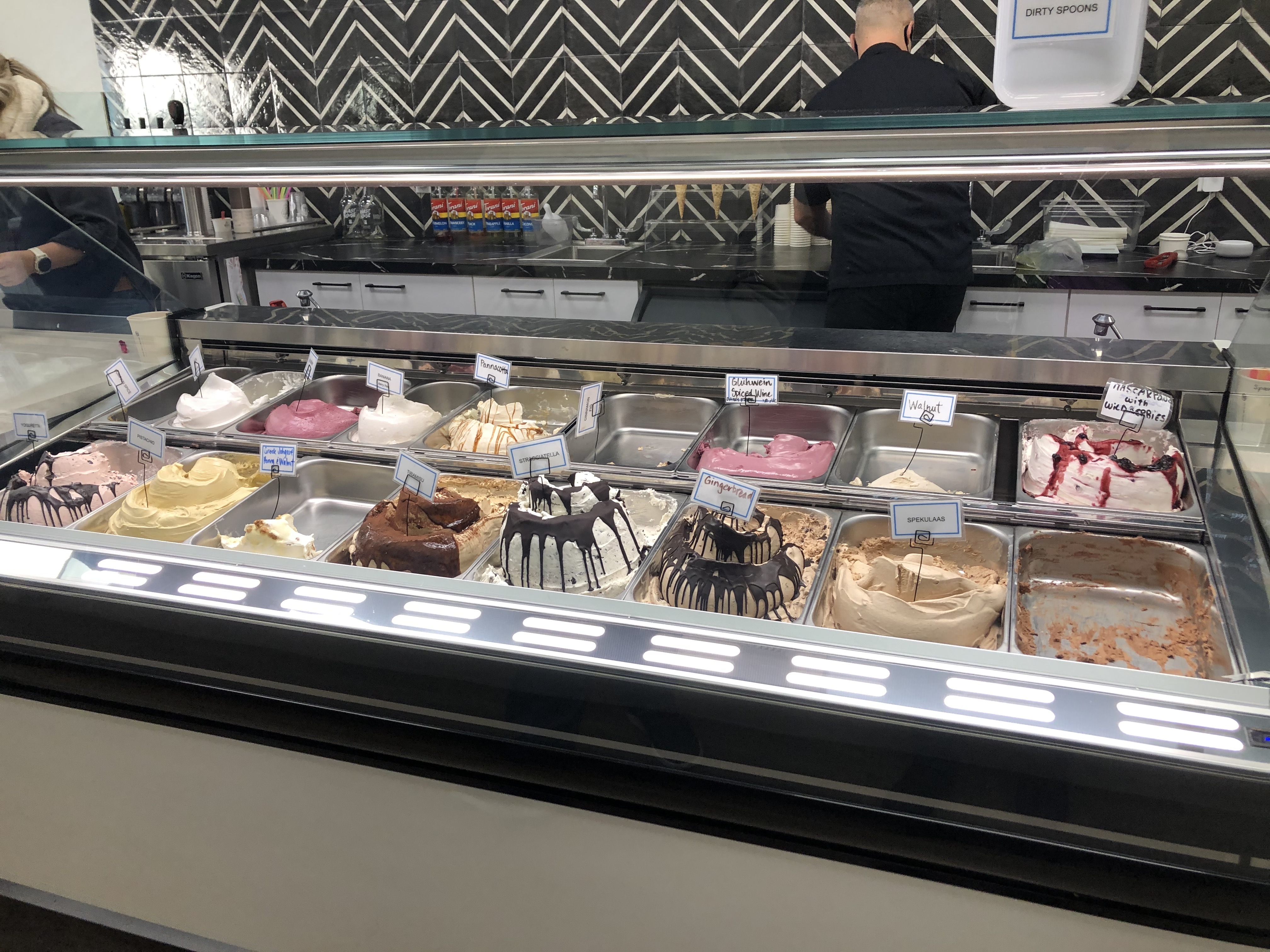 CDA downtown is very walk-able. You can get from one end to the other (not counting the long beachfront park on the western edge) in less than 10 minutes. And wherever we walked, the view was great. Dining is wide open there, we didn’t see much in the way of restrictions beyond polite requests to wear masks inside. Pleasantly enough, right in the middle is Gelato by the Lake, and we couldn’t pass it up. It’s all made right there, and they mix in the usual flavors with some of their own making. I chowed down on Stracciatella (vanilla and chocolate flakes) and Gingerbread; Wendy had the greek yogurt based Yoguretta, which was exactly like you would imagine, delicious.