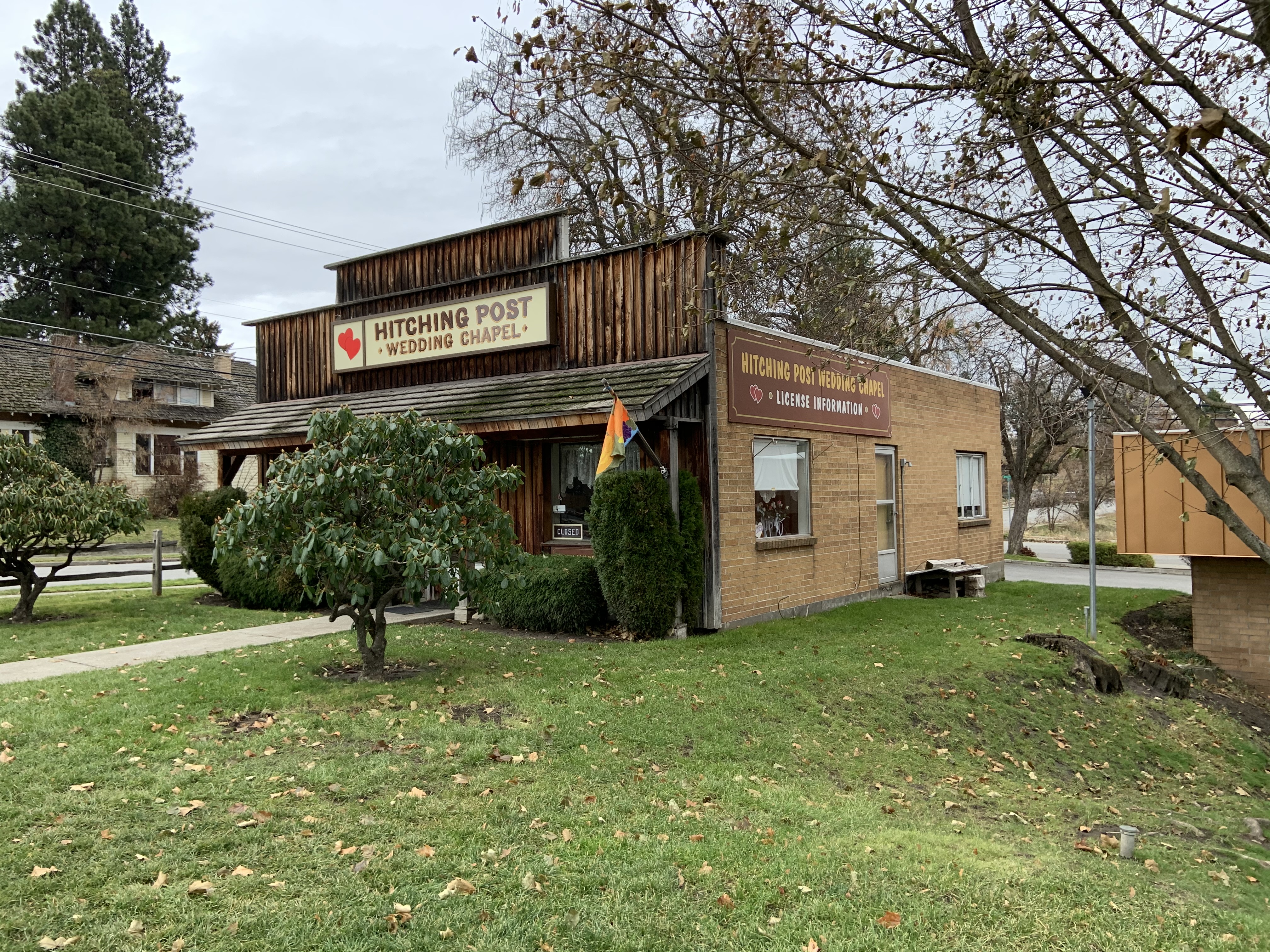 The City Hall sits next to the park, with the usual Bail Bondsmen and Lawyers offices across the street. But something you don’t see all that often caught our eye, The Hitching Post. Cool.