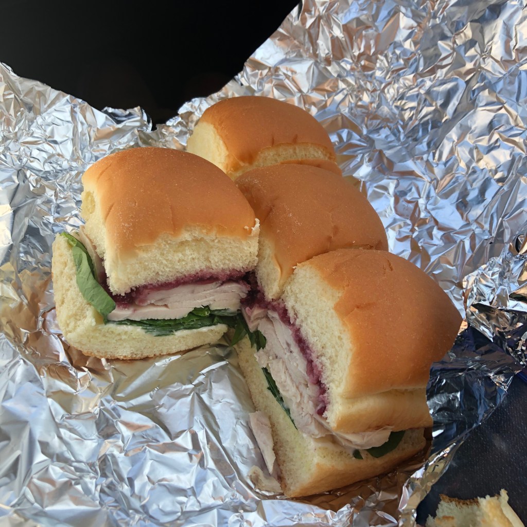 The huge variety of scenery makes this first half of the drive like a travelogue. But once you cross the Columbia, and get through the gorge, it may as well be Kansas; what you see is mostly hay and grain farming, and the endless giant stacks of hay bales and silos at railway stops dot the land. Since we planned to make the drive on Thanksgiving Day, we did our traditional turkey dinner a few nights early. This gave us the best part of a Thanksgiving Dinner, the leftovers, and we made good use of them for our on-the-road Thanksgiving Lunch.