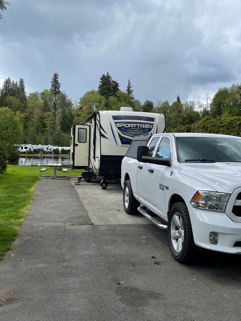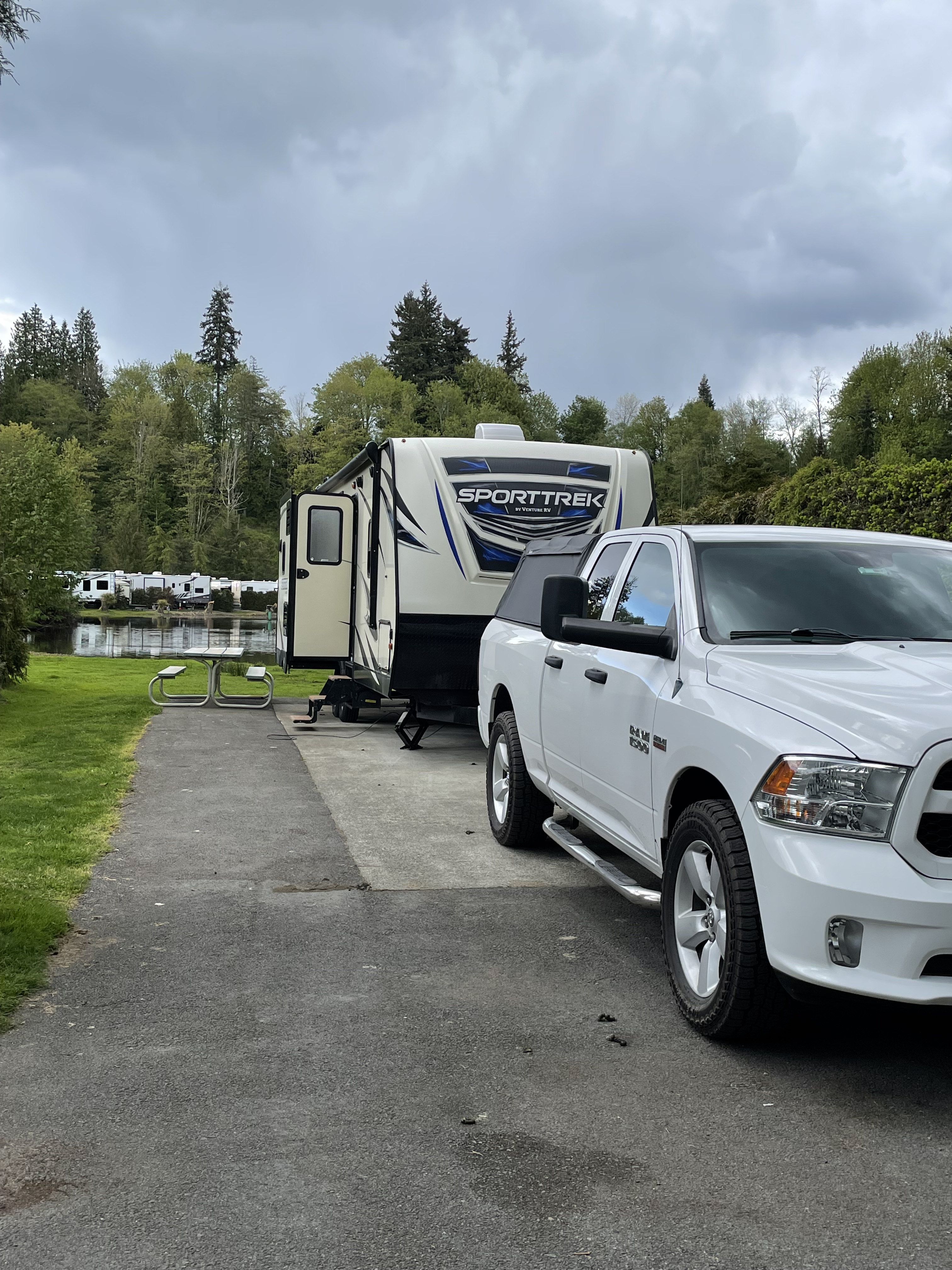 We have a little guest, who will likely feature prominently on our journey. Meet Racy Lacy, whose twin, Fancy Nancy, lives with Robin, Wendy’s BFF “Storage Friend” (another story entirely). Lacy lounges around the rig, gazing at us and out the window at the geese and the lake. I’ll see if we can coax some comments out of her in the future.