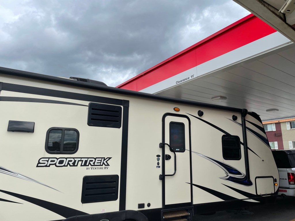 And here’s a fun fact: not all gas stations have high covered bays. (It looks closer than it is.)