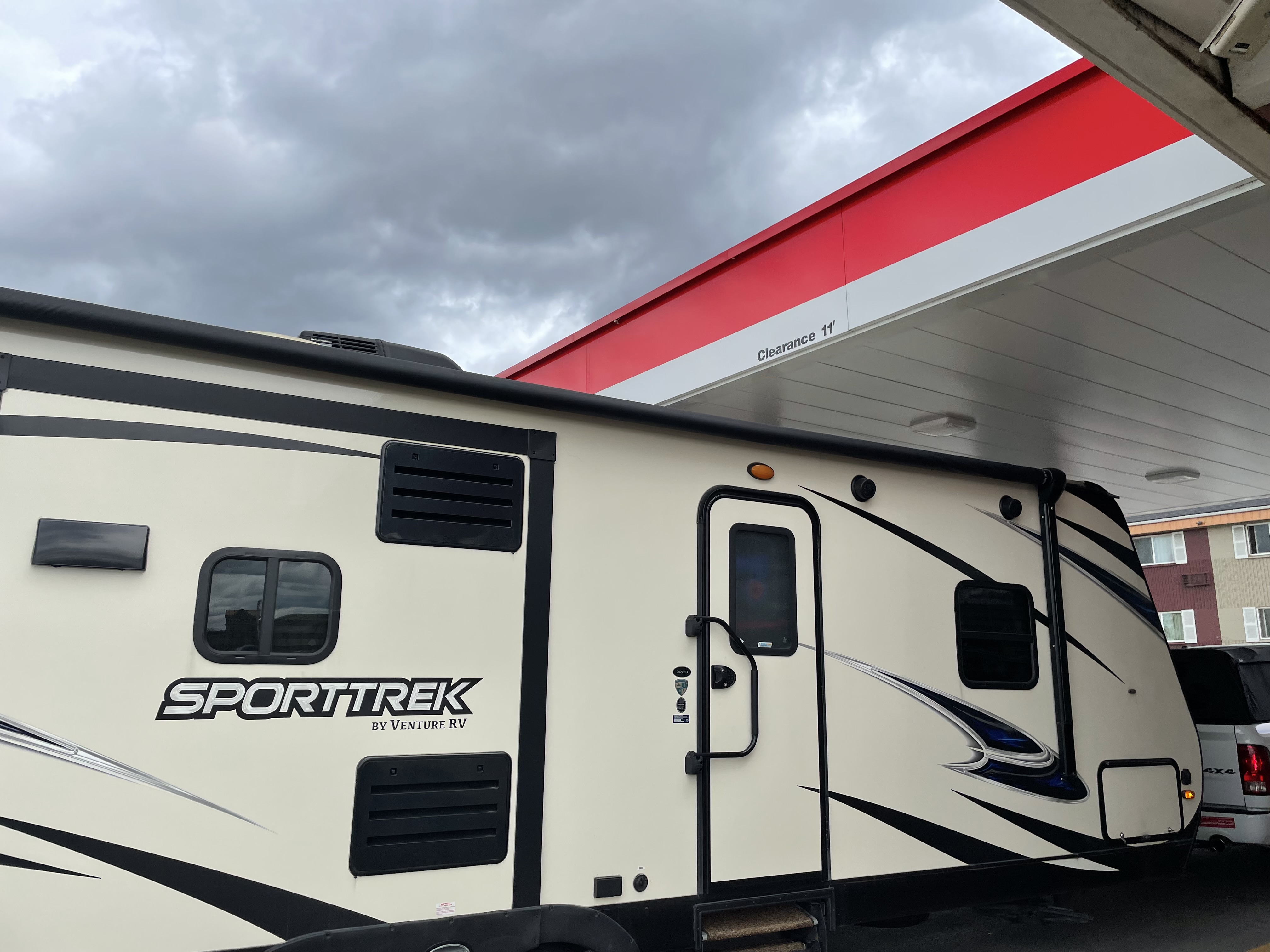 And here’s a fun fact: not all gas stations have high covered bays. (It looks closer than it is.)