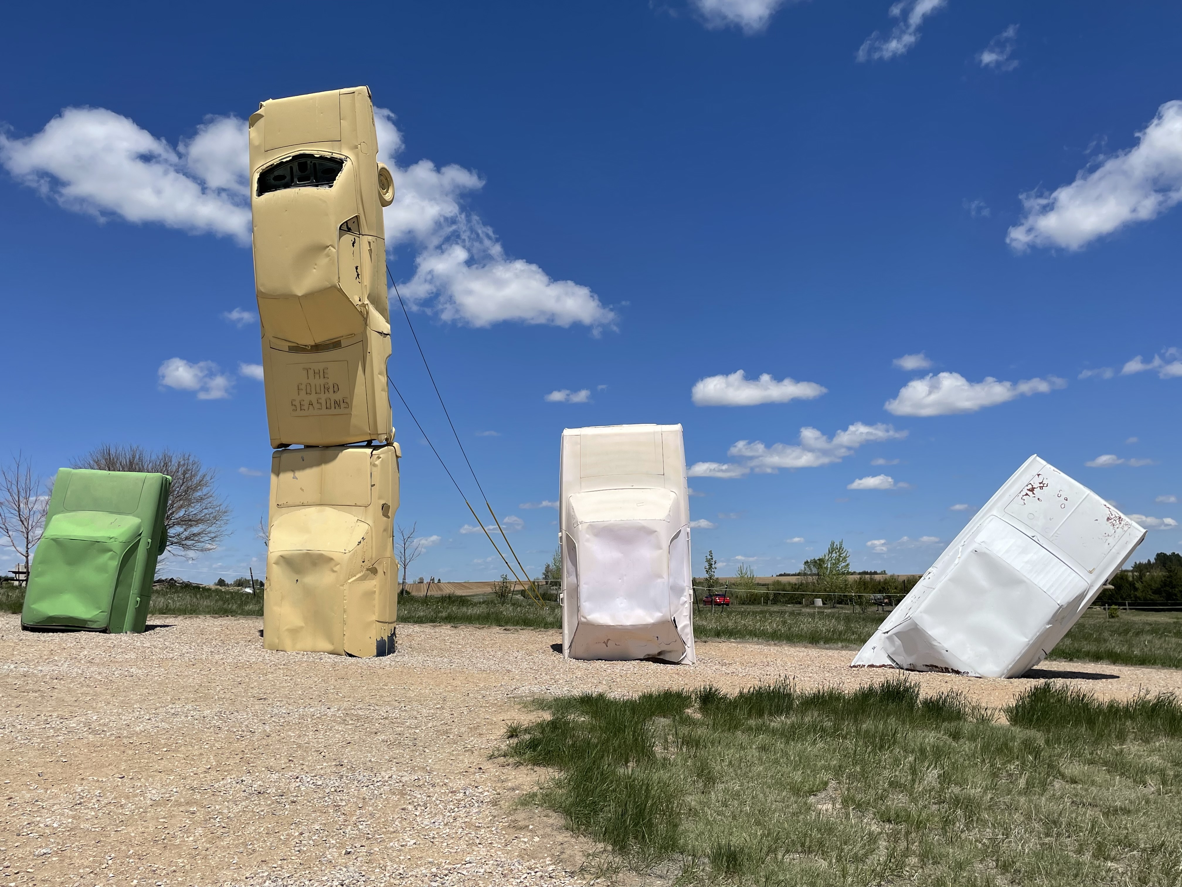 A historical plaque informed us that the temple was completely assembled over 6 days during a large family visit in the summer of 1987. By his calculations, “we were able to reduce the time of the original Stonehenge construction by 9,999 years and 1 week”, thus imparting some sort of obtuse historical victory to the Reinders Clan. There are also a few other art exhibits constructed on the site.