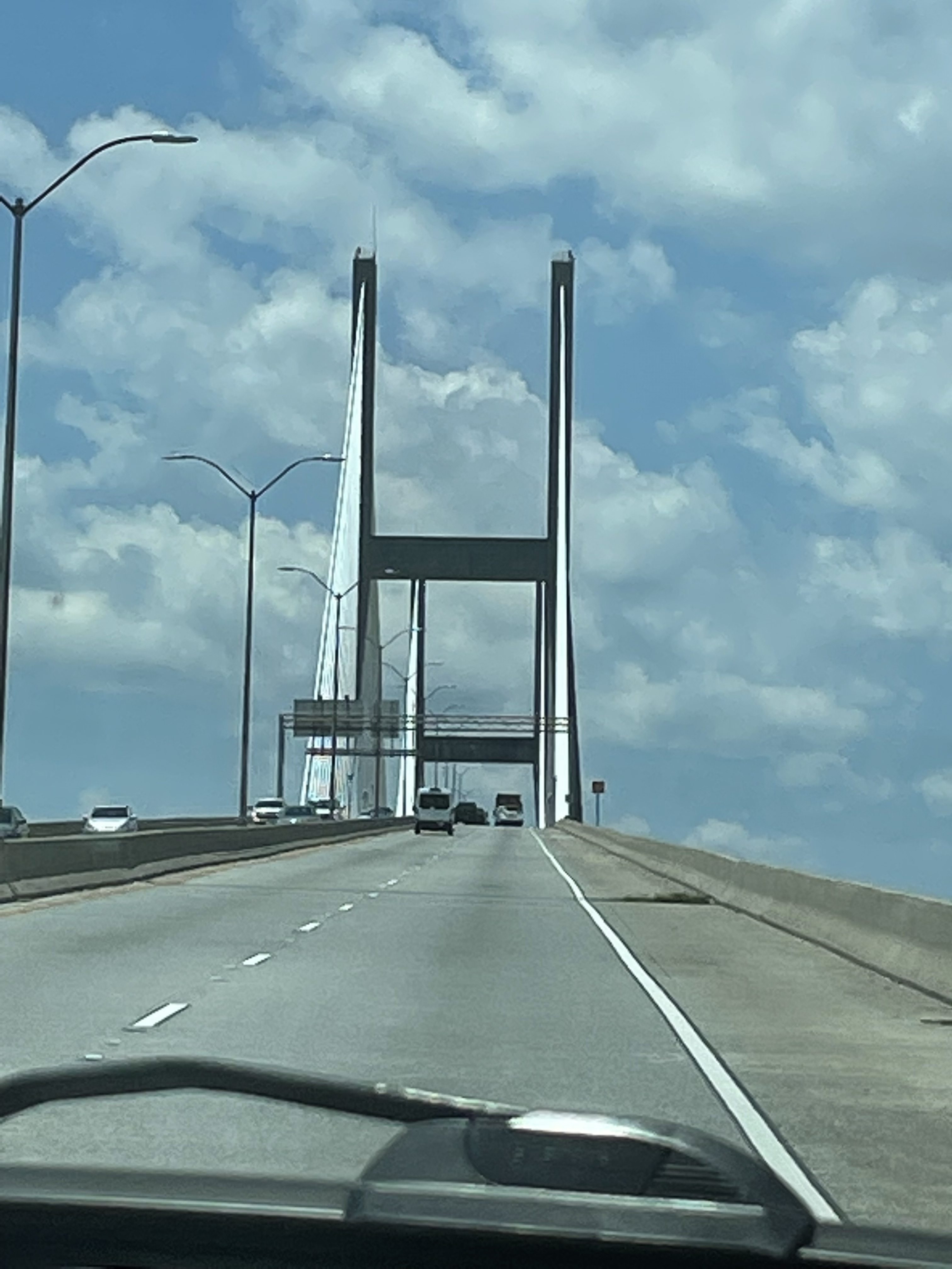 We finally hit the last stop before the finish line, Savannah Georgia. We stay 3 nights to give ourselves 2 full days, but without any plans. We have lots to do when we arrive in our temporary RV park/home in Hastings Florida, and this is a chance to rest up, have some fun, enjoy the local hospitality and food, and get another 20,000 steps on our exercise program. We were greeted by a cool-looking suspension bridge over the Savannah River that suddenly rose up out of the Low Country as we traveled south.