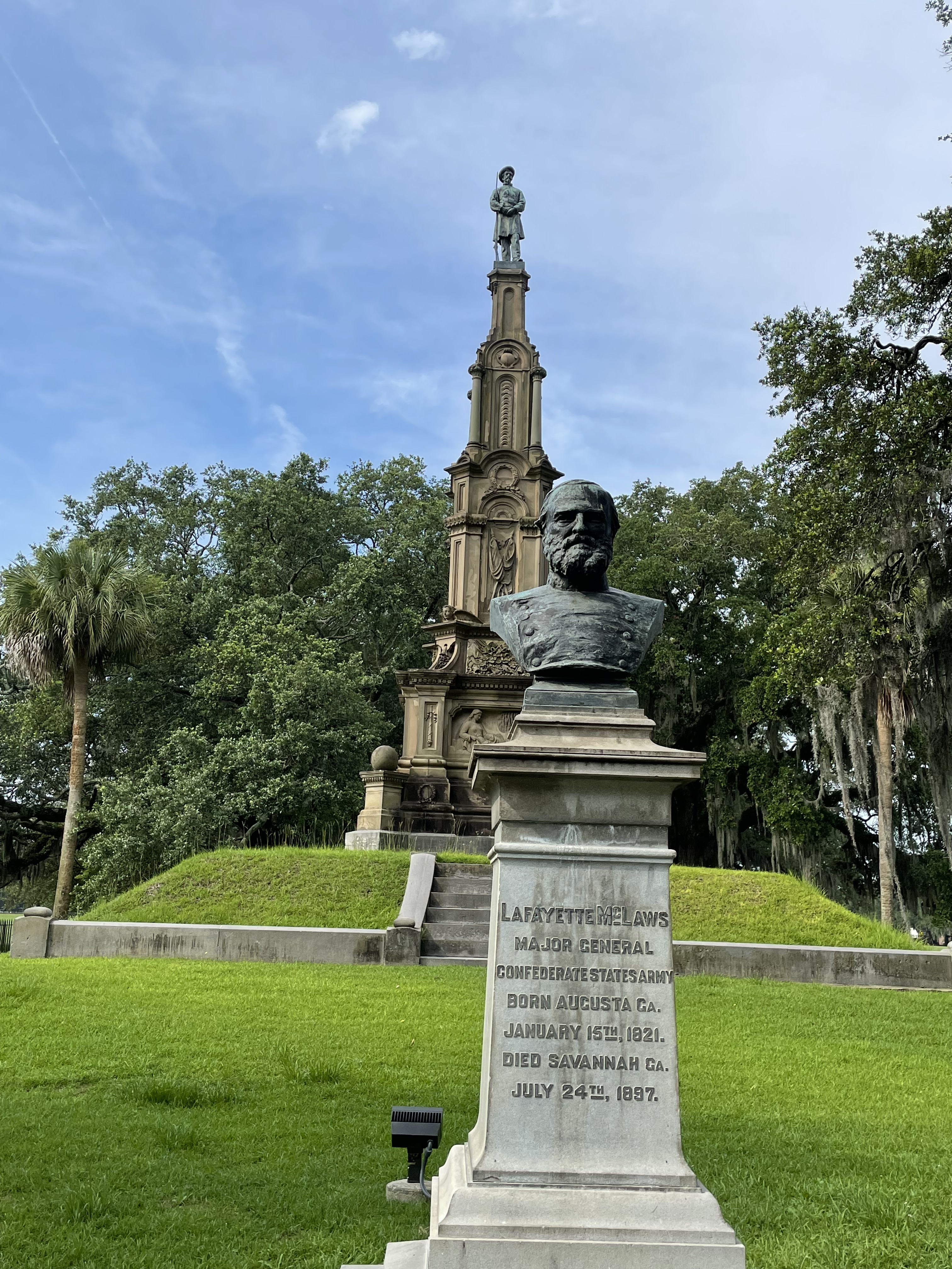 The Civil War era statues were all of people who were born or died in Savannah, and are frequently entombed beneath. Maybe that’s how they keep the statues standing?