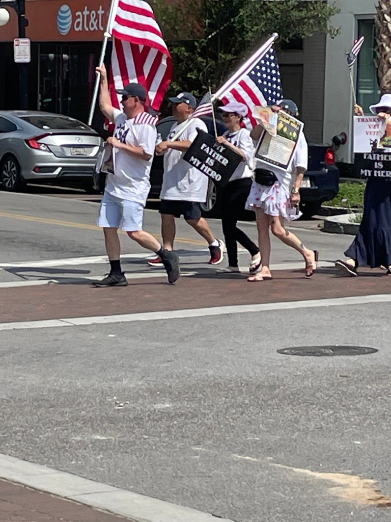 There was also a raucous protest parade in the downtown shopping district, with about 3 dozen marchers with signs and American flags, matching slogan t-shirts, and loud bullhorns chanting “USA, USA” and “Shame on You, Shame on You” in alternating cadence. They were protesting about fatherless homes, and specifically addressing deadbeat dads. I didn’t see them exactly protesting AT any deadbeat dads, but I liked the sentiment. Perhaps another lesson for America is available here.