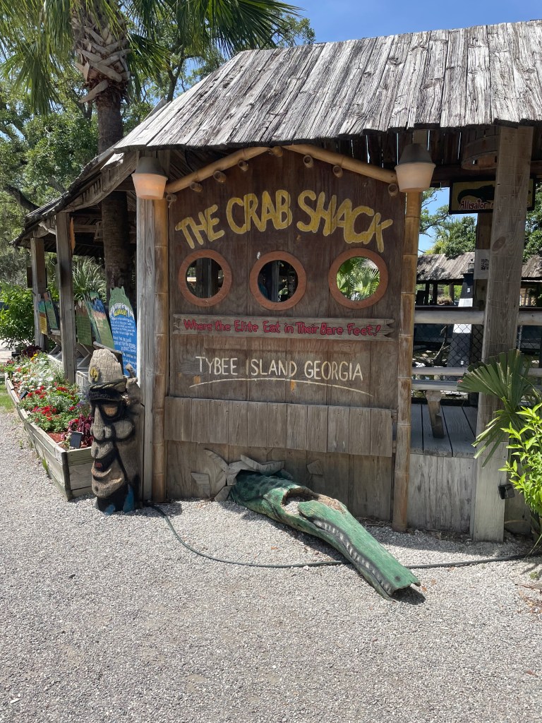 We wound up our beach relaxation with a crab boil lunch at the Crab Shack, an area favorite that is extremely casual (I didn’t even change out of swimsuit or tank top) and has great food. We got a platter of goodies, and ate the whole thing: corn, potatoes, sausage, crawdads, snow crab, shrimp and mussels. They even have a gator pond so you can see what your backyard might potentially look like if you are moving to Florida.