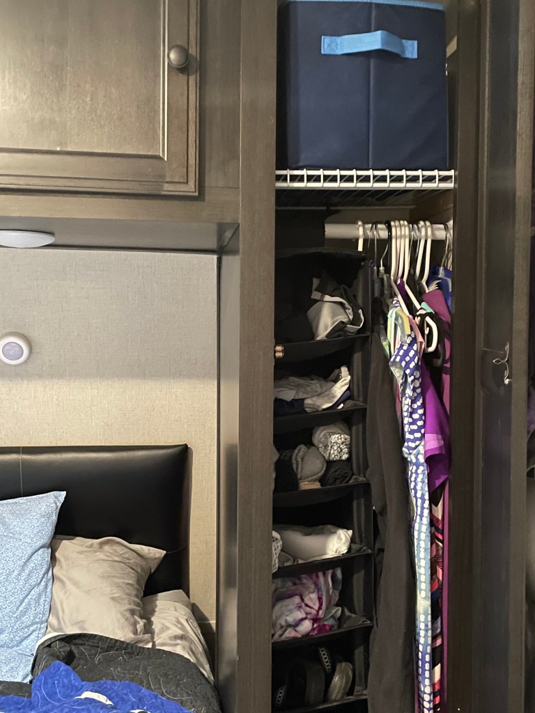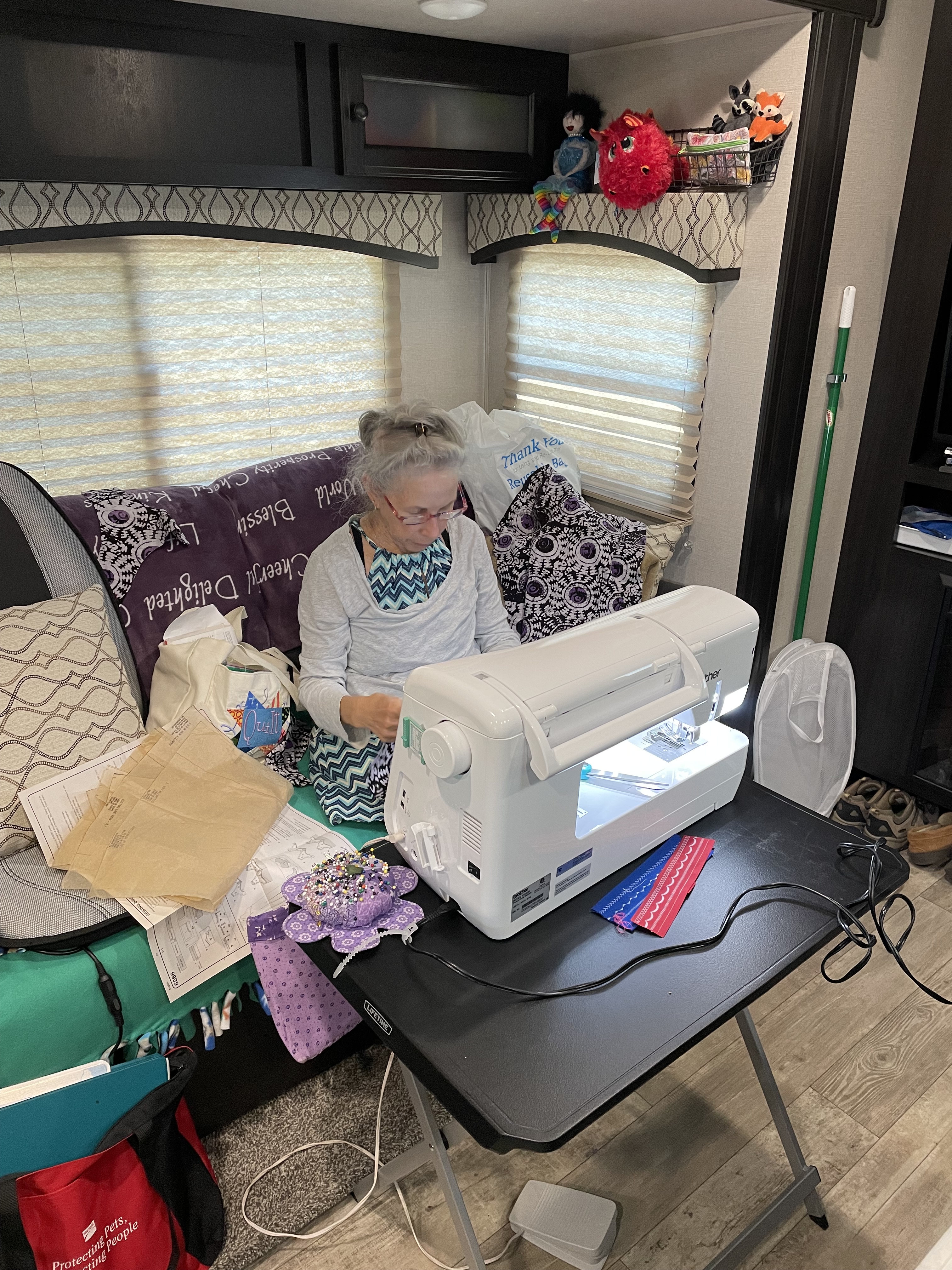 Most of you know I’m a “sew and sew”, that I sew…a lot. Creating and sewing keep me sane because, as many of you also know, I do not sit still very well. Since we arrived here at our temporary home 4 weeks ago, I have made two dresses, a pair of shorts, seat covers for our “Midget”, repaired several items and now I’m making a summer dress for Samara, who turns 7 in August. I am so grateful that we found a place for it even if it caused us a little pain. And pain does sometimes happen in tight quarters. For example, last week I was working at the kitchen sink and had left the bottom drawer open so I could return the scissors I was using. With my focus clearly on my project, I stepped back and fell backward, in slow motion, over the drawer. I had enough time to thankfully fall over the drawer and not on it. Still, it left a couple of scrapes and a bruise that have since healed. A tough lesson to learn but learn it I did, and it didn’t require any stitches. I was lucky this time.