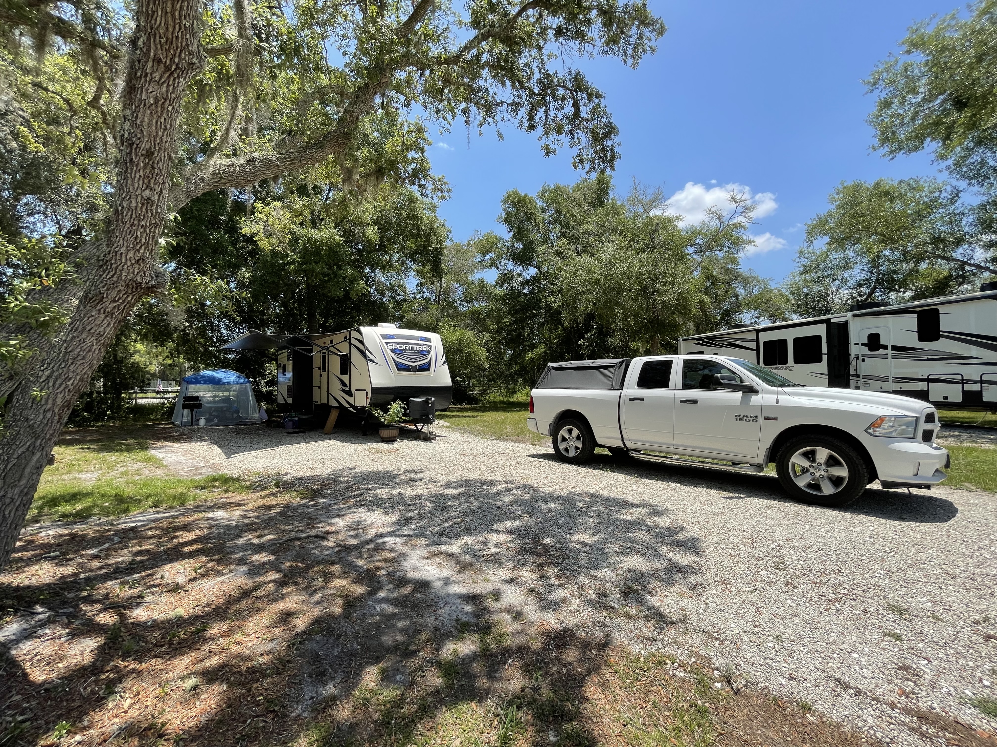 This year was a very cold and long spring in Washington, and the V stayed dormant much longer than ever before. By the time we left in mid-May, only a few small sprouts had emerged. Our weather and “climate” didn’t really improve until we headed south through Colorado, and that’s when the V woke up. By the time we got to our current camp, we had some 2-foot-long vines ready to spread their wings, and true to form the V has responded very vigorously to the super warm and humid days here. Our timing on the move into the new house might be perfect for our end game with the V. Our goal has always been to put this baby in some terra firma when we got a “forever home”, and a late winter planting will be perfect!