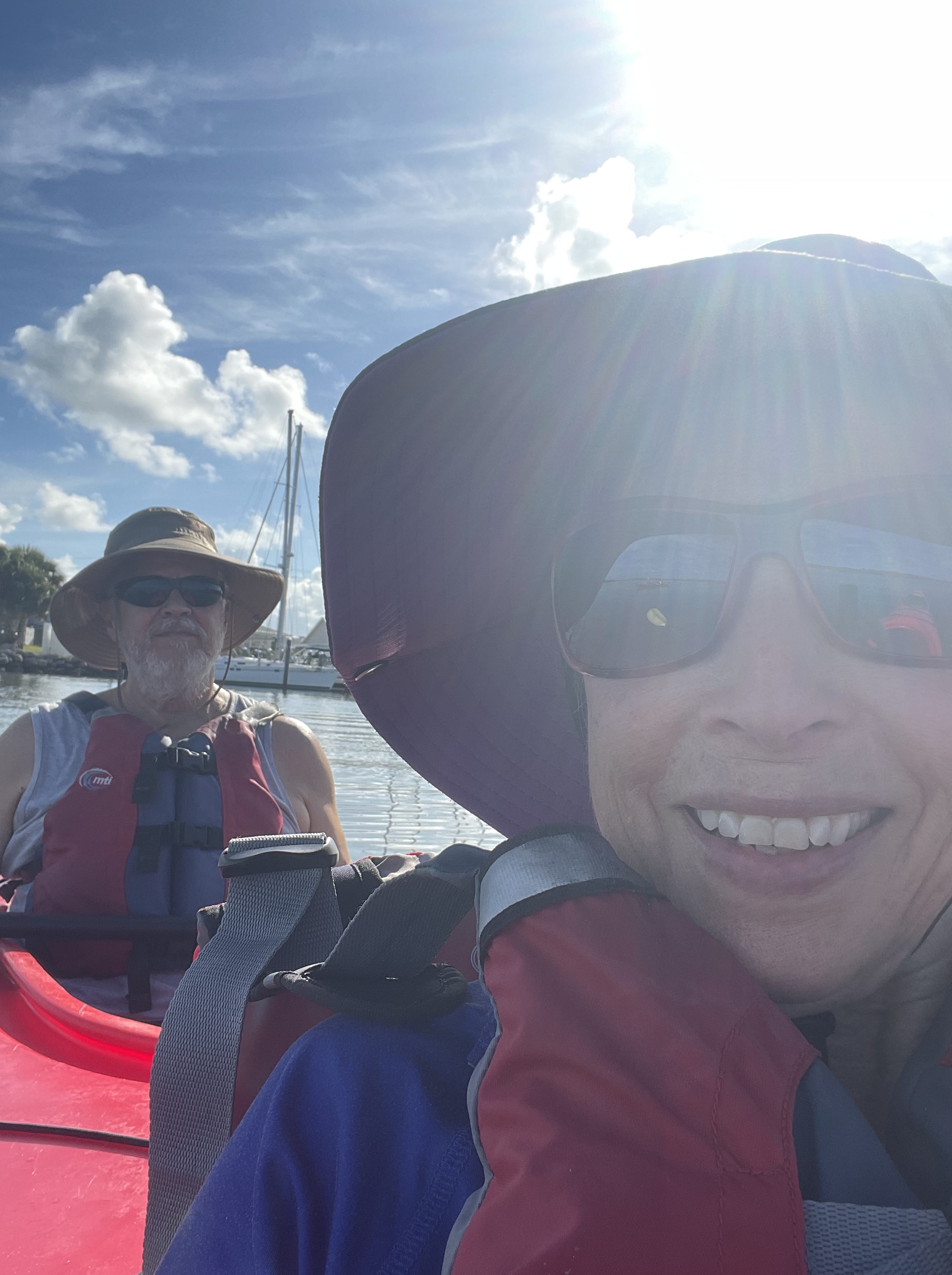 In the Pointy Things corner: Living in an RV, which is basically a small box on wheels, has many challenges. You adapt over time to these, like learning how to conserve a relatively small fresh water supply, or 2 people showering with a 6-gallon hot water heater. I have had a particularly hard time adapting to the Pointy Things challenge. No, there aren’t knives and spears randomly placed around the rig to stick and stab me, I speak of the pointy things on my person: toes, fingers, knees, elbows, knuckles and such. These will find any hard surface or sharp edge when they are flung around with abandon in a tight space. I find it valuable to spend more time focusing on Mindfulness, to grant me the increased concentration to know where these pointy things are at any time, and what they might meet as I pass through a door or turn around. It’s a process that requires patience. Wendy will add a little more to this a little later.